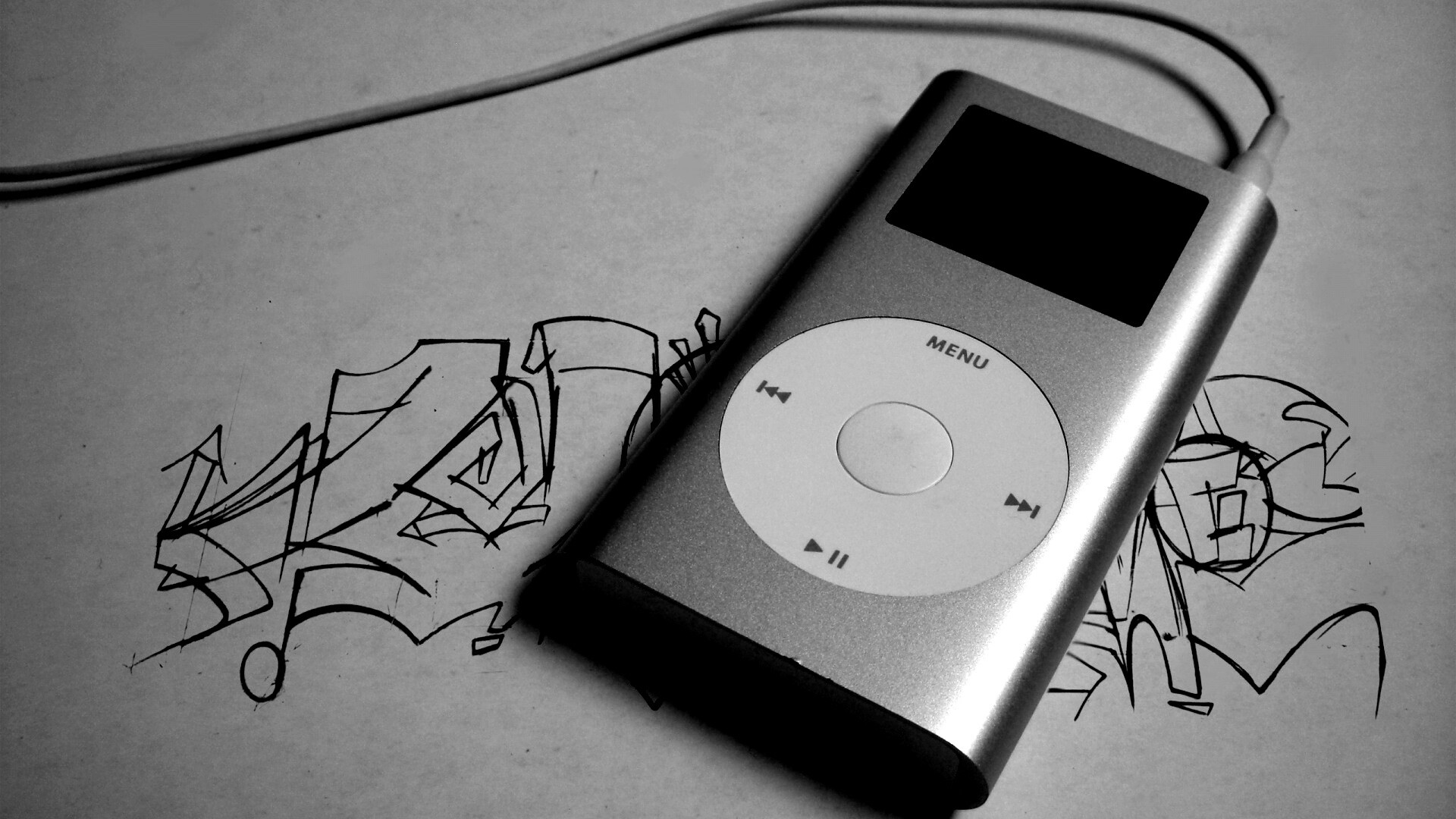 «iPod на лиске с граффити»