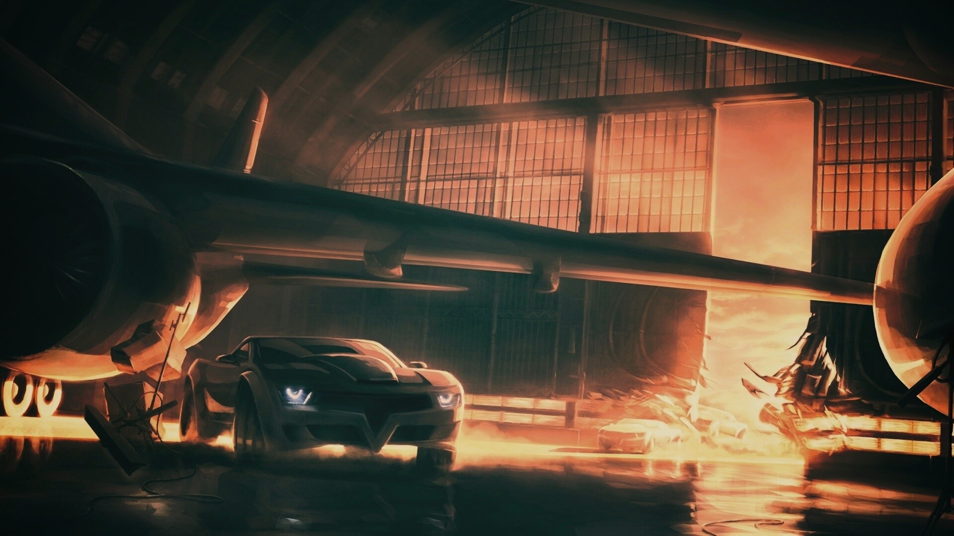 «Машины въезжают в ангар»