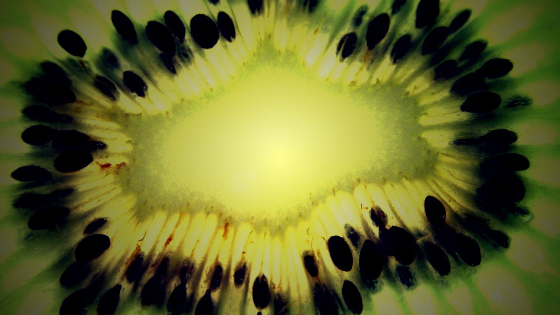 Обои для рабочего стола «Макро фото киви в разрезе» 1920х1080 с фильтром lomo (оригинал 2560х1920)