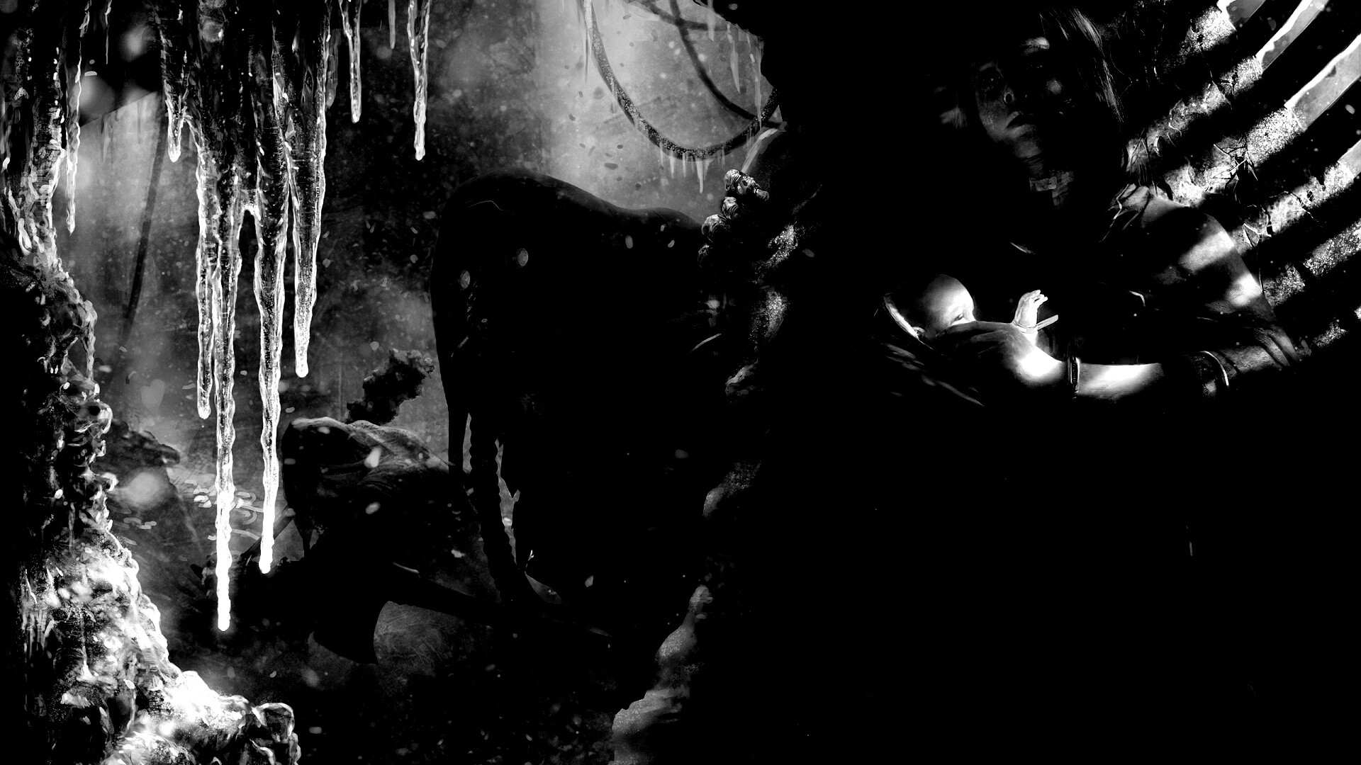 «Девушка с ребенком прячется от монстра»