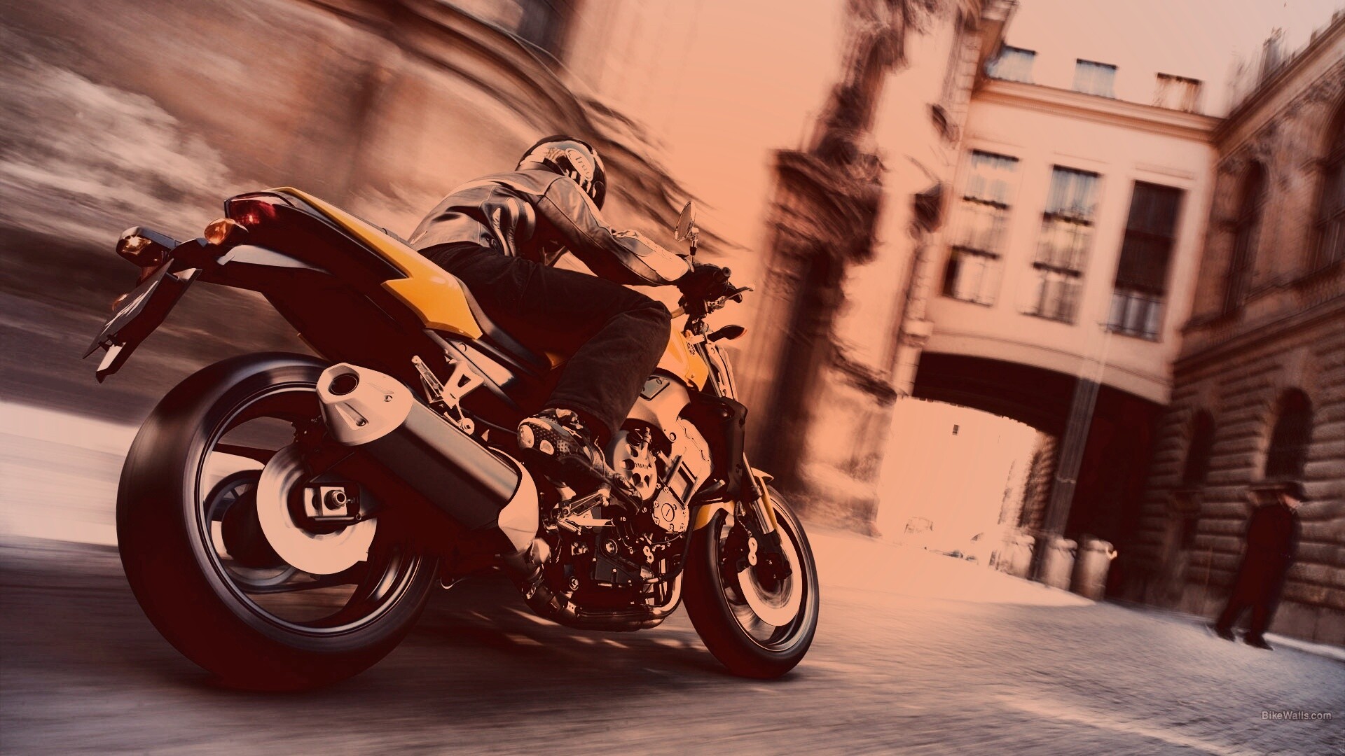 «Ямаха и наездник на улицах города»