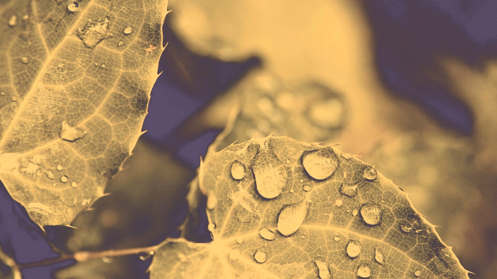 Обои для рабочего стола «Капельки росы на листьях» 1920х1080 с фильтром nashville (оригинал 1920х1200)