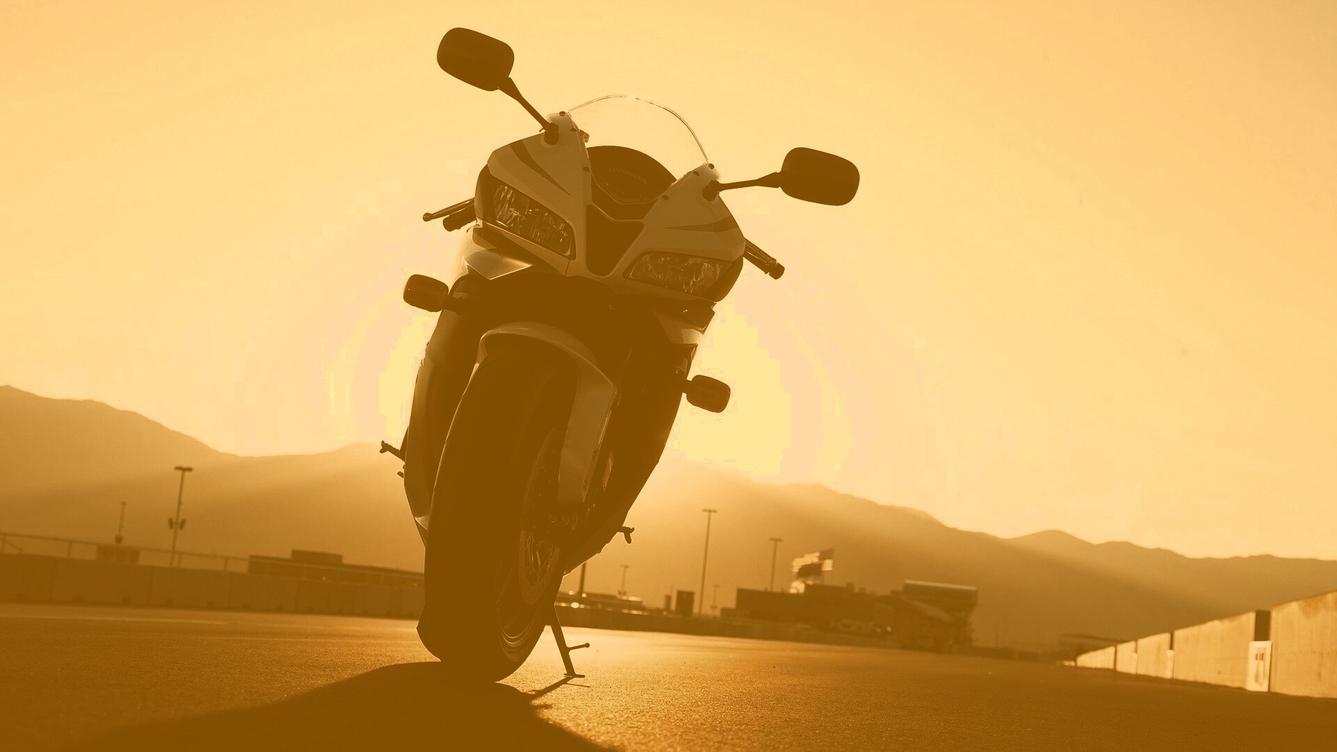 «Мотоцикл на фоне заходящего солнца»