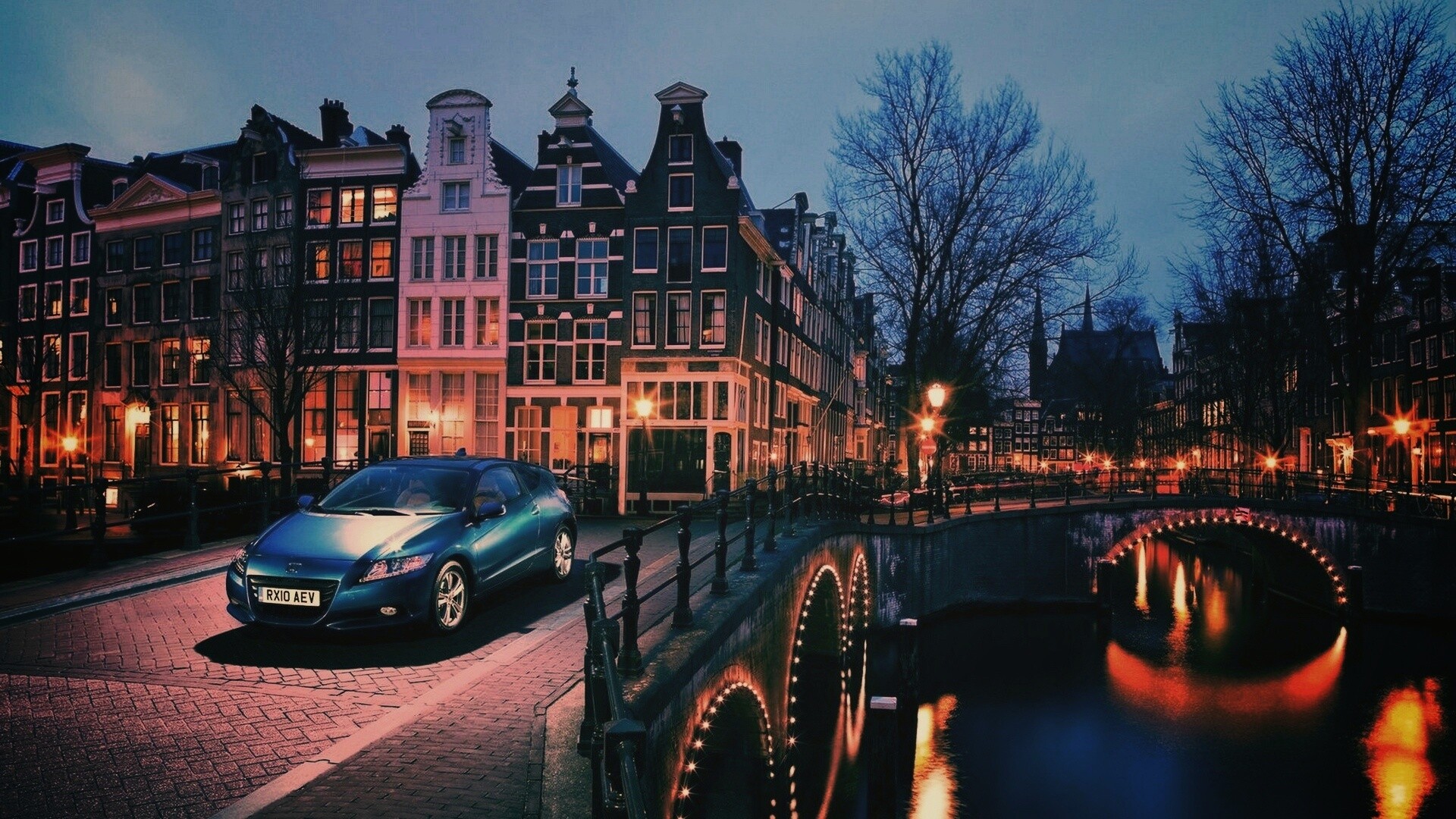 «Автомобиль на мосту в свете фонаря»