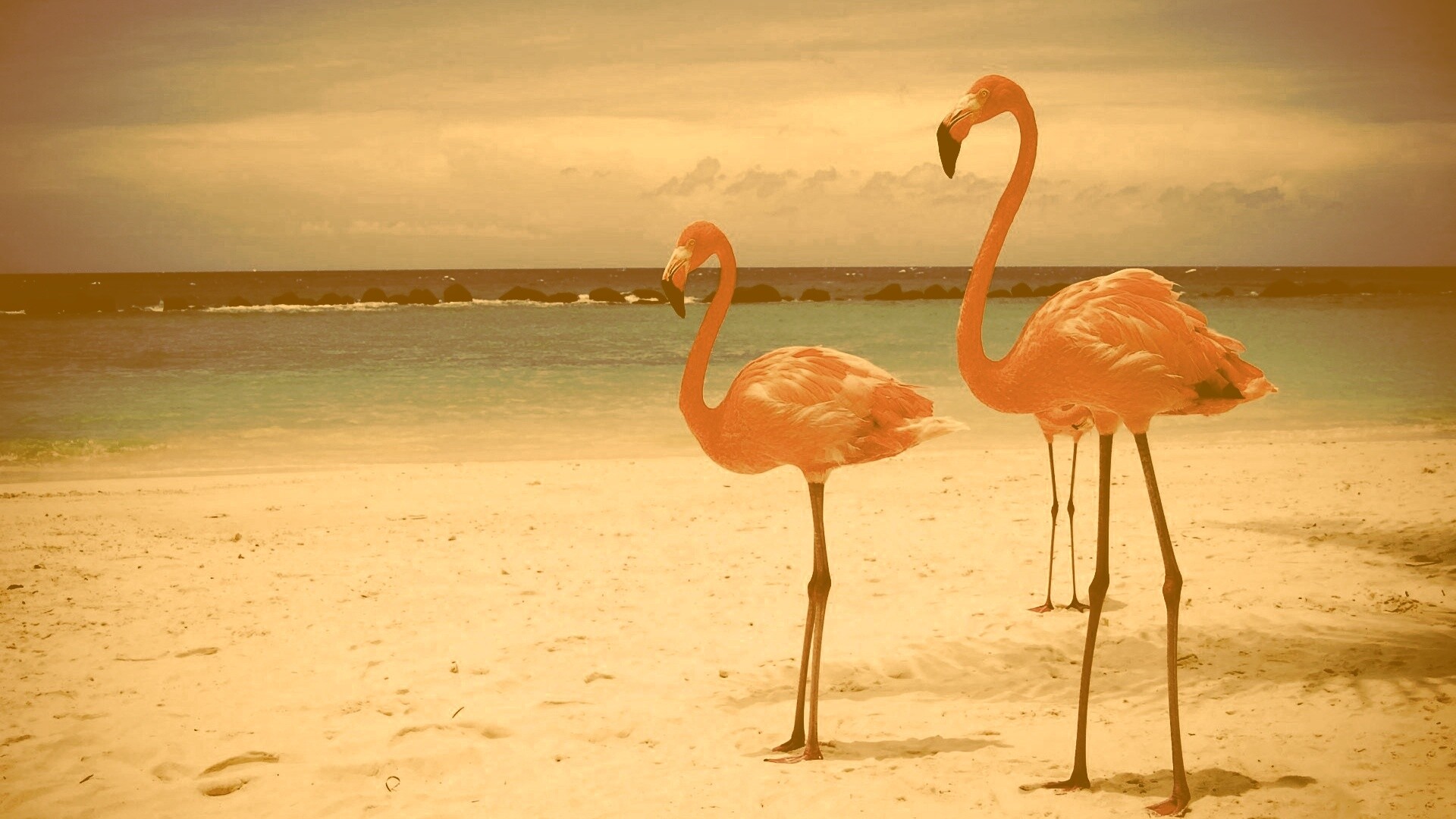 «Розовые фламинго на пляже»