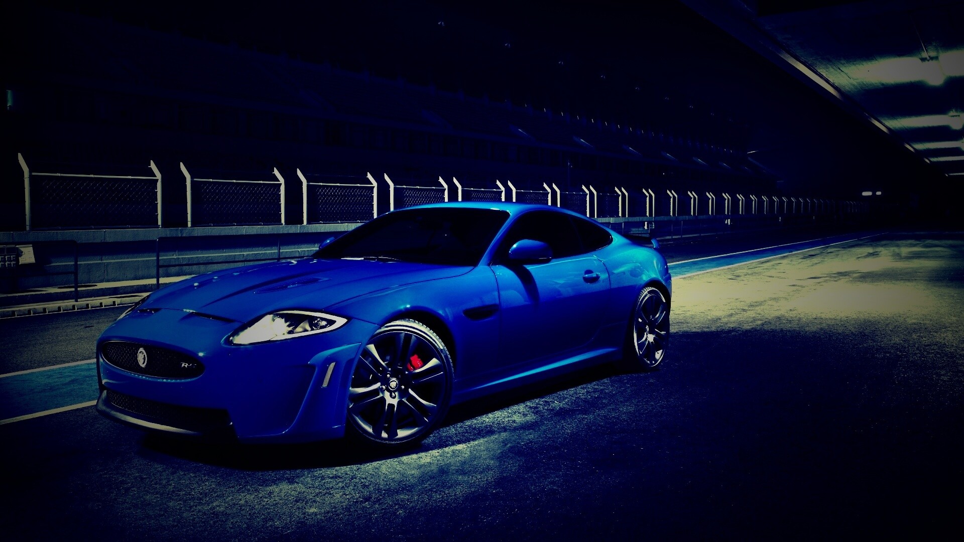 «Синий спорткар на гоночном треке»