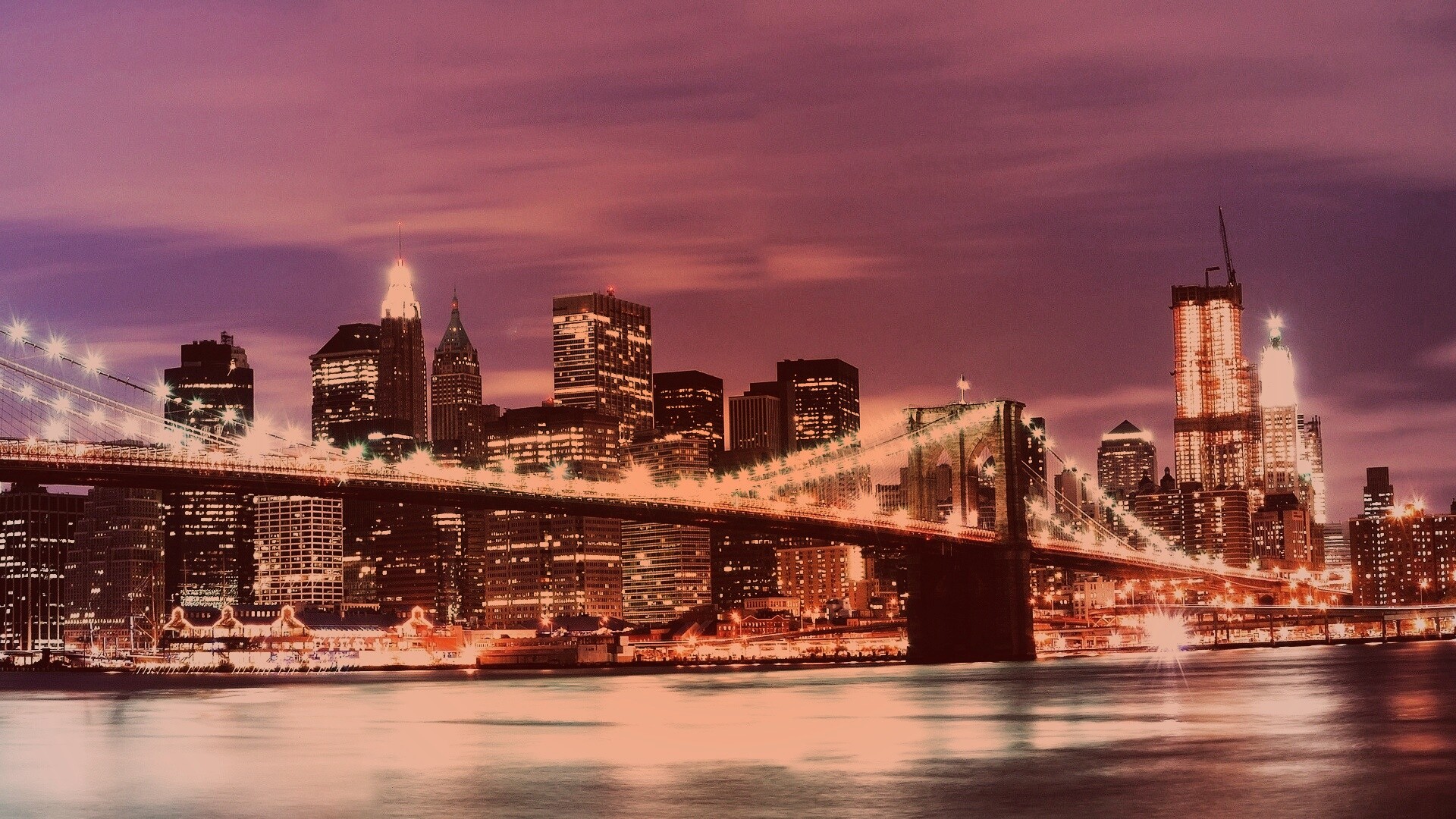 «Бруклинский мост на фоне ночного Нью-Йорка»