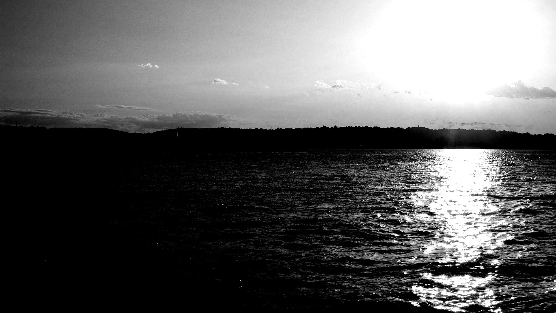 Обои для рабочего стола «Красивое закатное озеро» 1920х1080 с фильтром inkwell (оригинал 2560х1440)