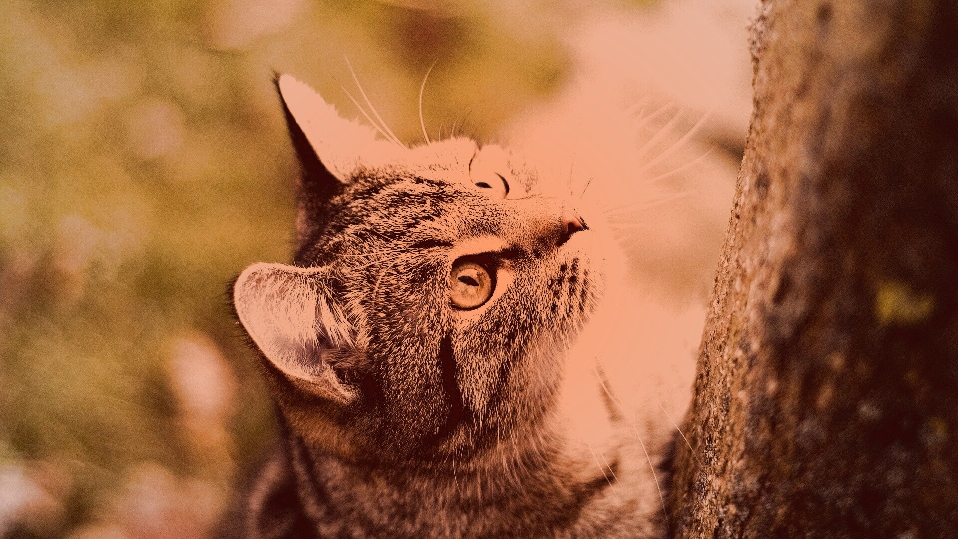 Обои для рабочего стола «Кошак на дереве» 1920х1080 с фильтром toaster (оригинал 2560х1600)