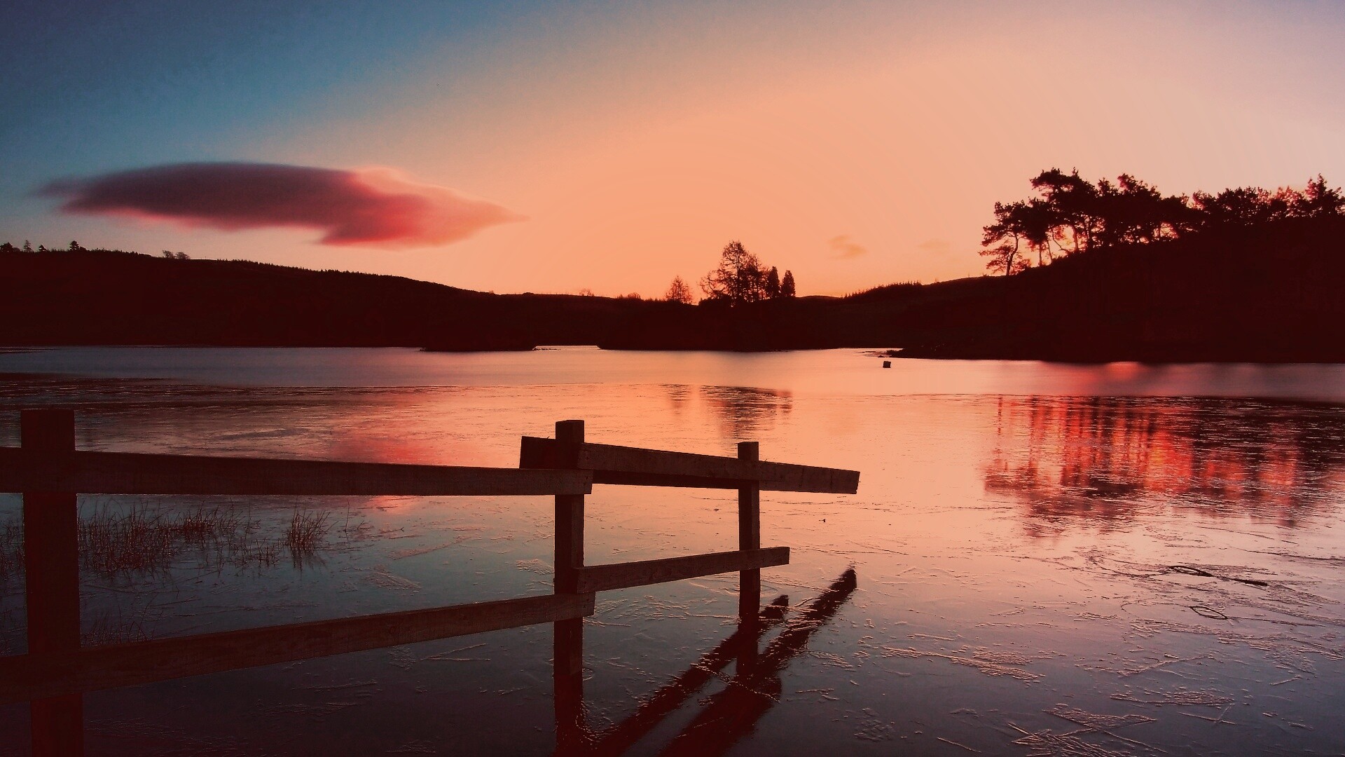 Обои для рабочего стола «Красивый закат на озере» 1920х1080 с фильтром toaster (оригинал 3200х2000)