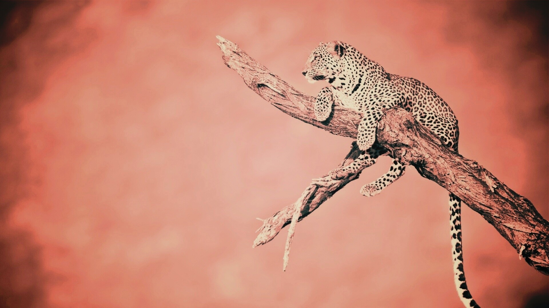 Обои для рабочего стола «Ягуар на дереве» 1920х1080 с фильтром earlybird (оригинал 2560х1600)