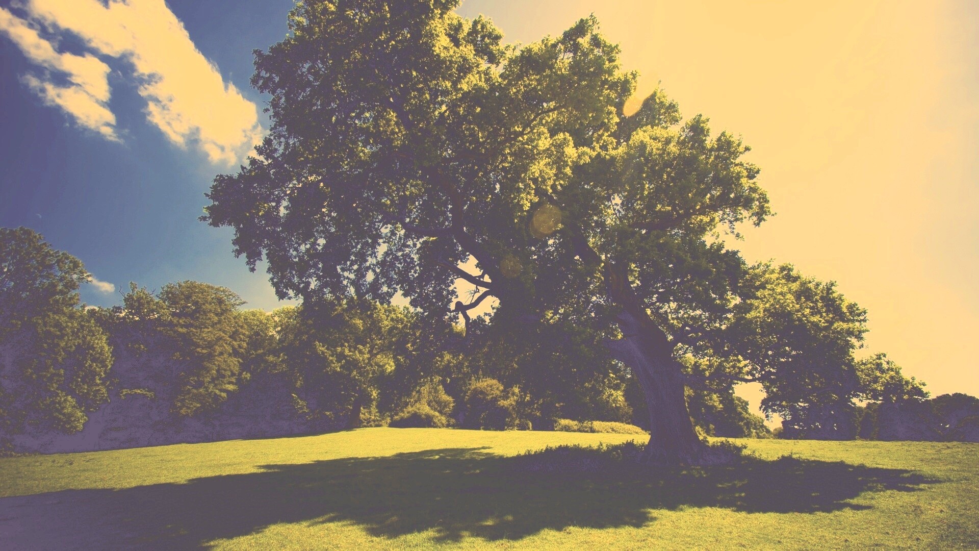 «Большое зеленое дерево на лужайке»