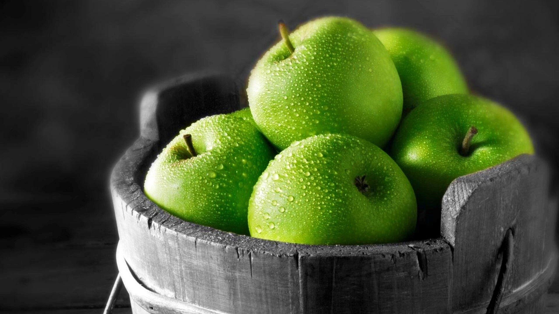 Обои для рабочего стола «Ведро зеленых яблок» 1920х1080 с фильтром vibrance (оригинал 1920х1200)