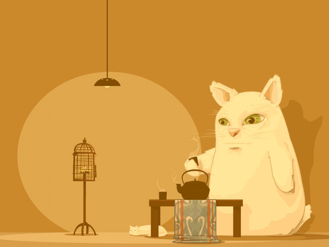 «Кот пьет чай»