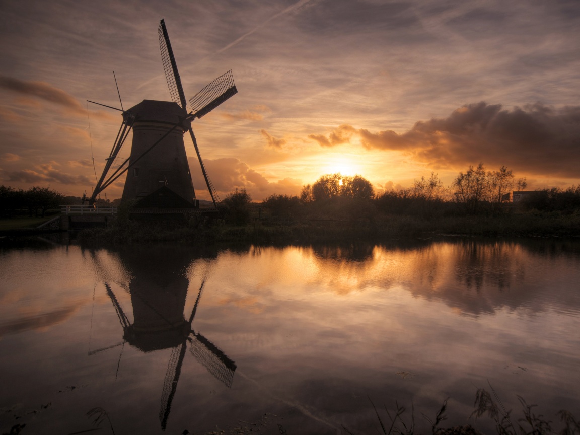 Обои для рабочего стола «Мельница на озере» 1152х864 (оригинал 4456х2936)