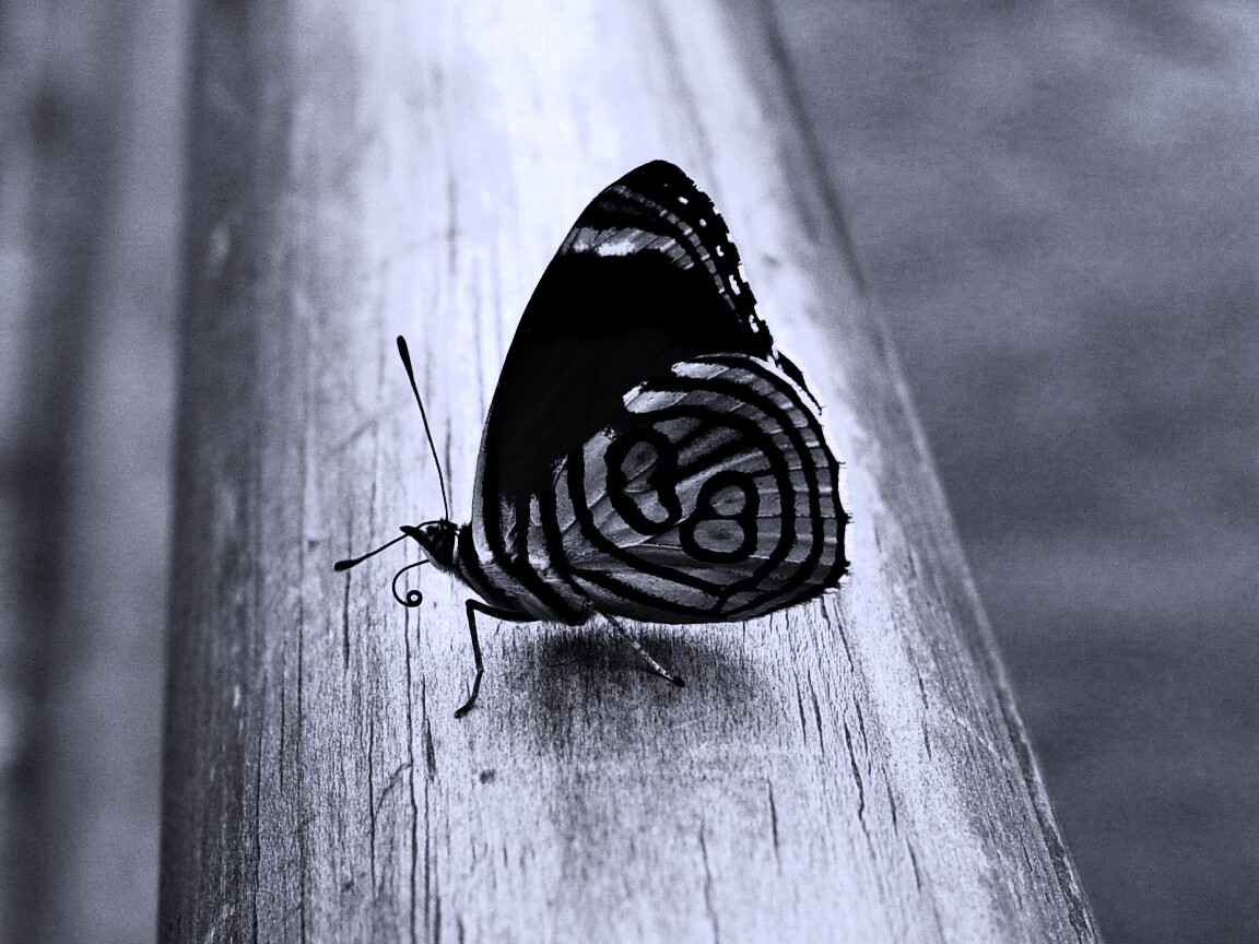 Обои для рабочего стола «Бабочка на бревне» 1152х864 с фильтром gotham (оригинал 1600х1200)