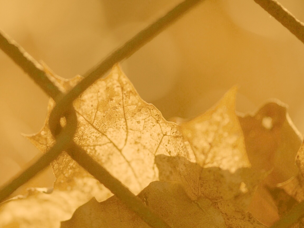 Обои для рабочего стола «Осенний лист на забором» 1152х864 с фильтром kelvin (оригинал 3877х2561)