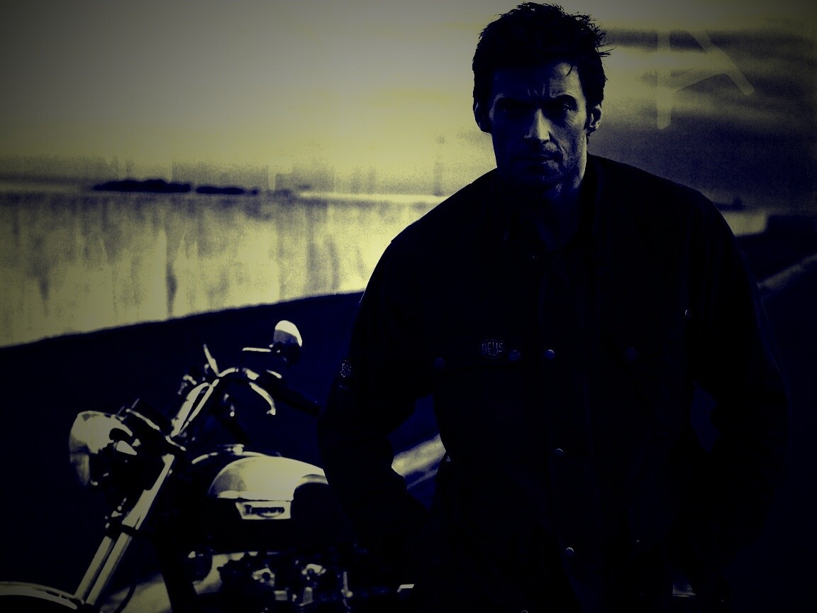 «Хью Джекман с мотоциклом»