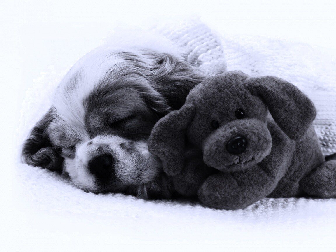 Обои для рабочего стола «Собака спит с игрушкой» 1152х864 с фильтром gotham (оригинал 1920х1200)