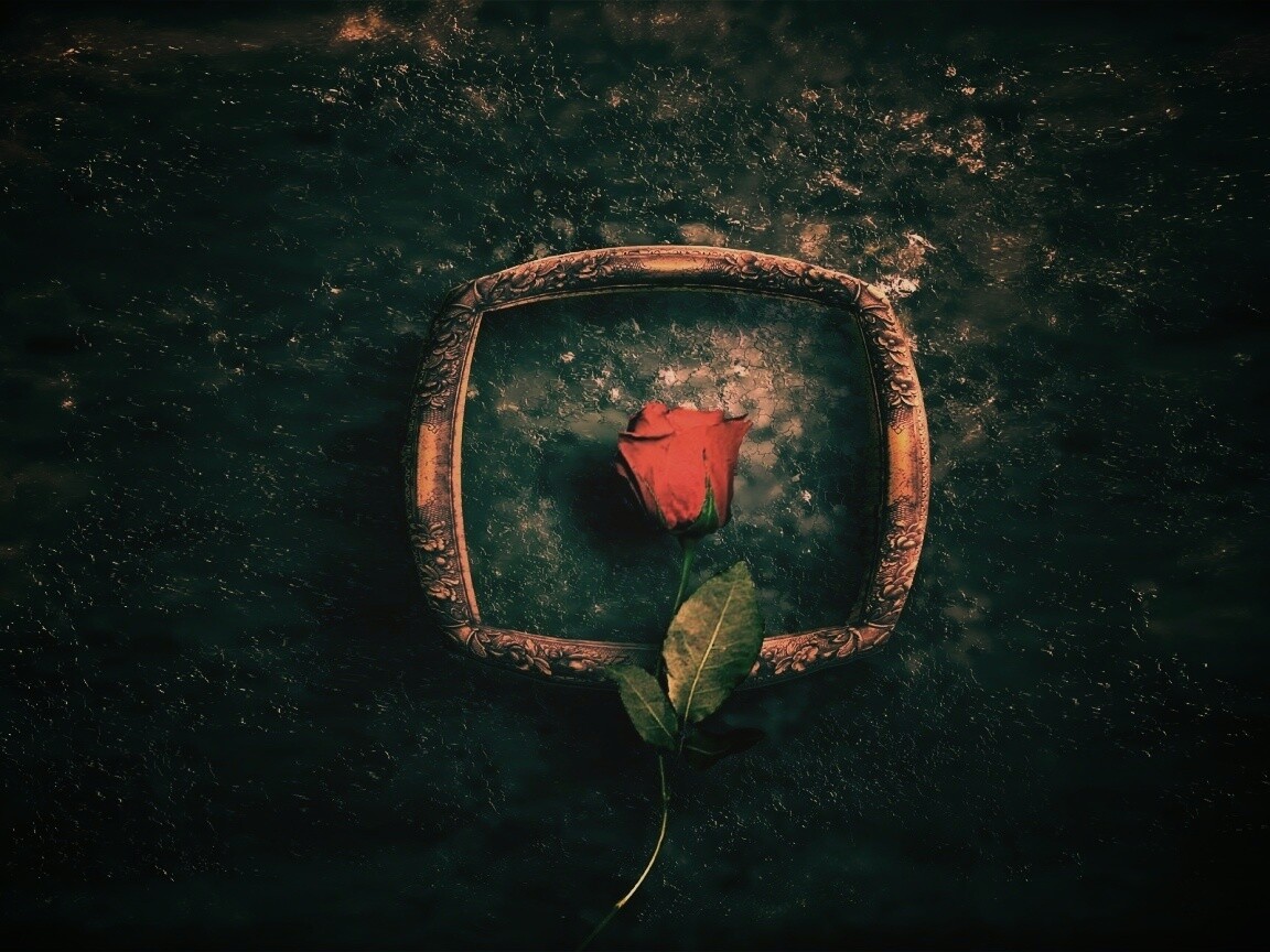 Обои для рабочего стола «Роза на картинной раме» 1152х864 с фильтром earlybird (оригинал 1920х1200)