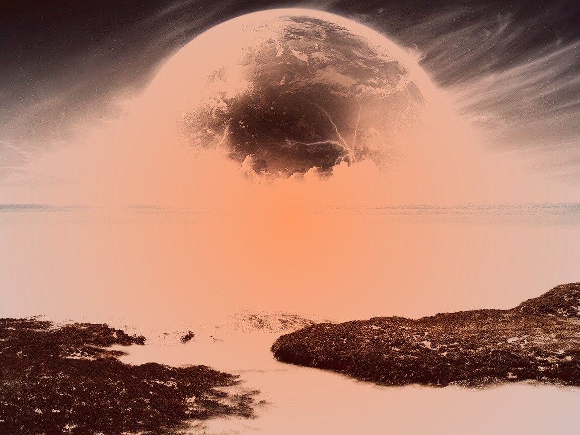 «Огромная луна над океаном»