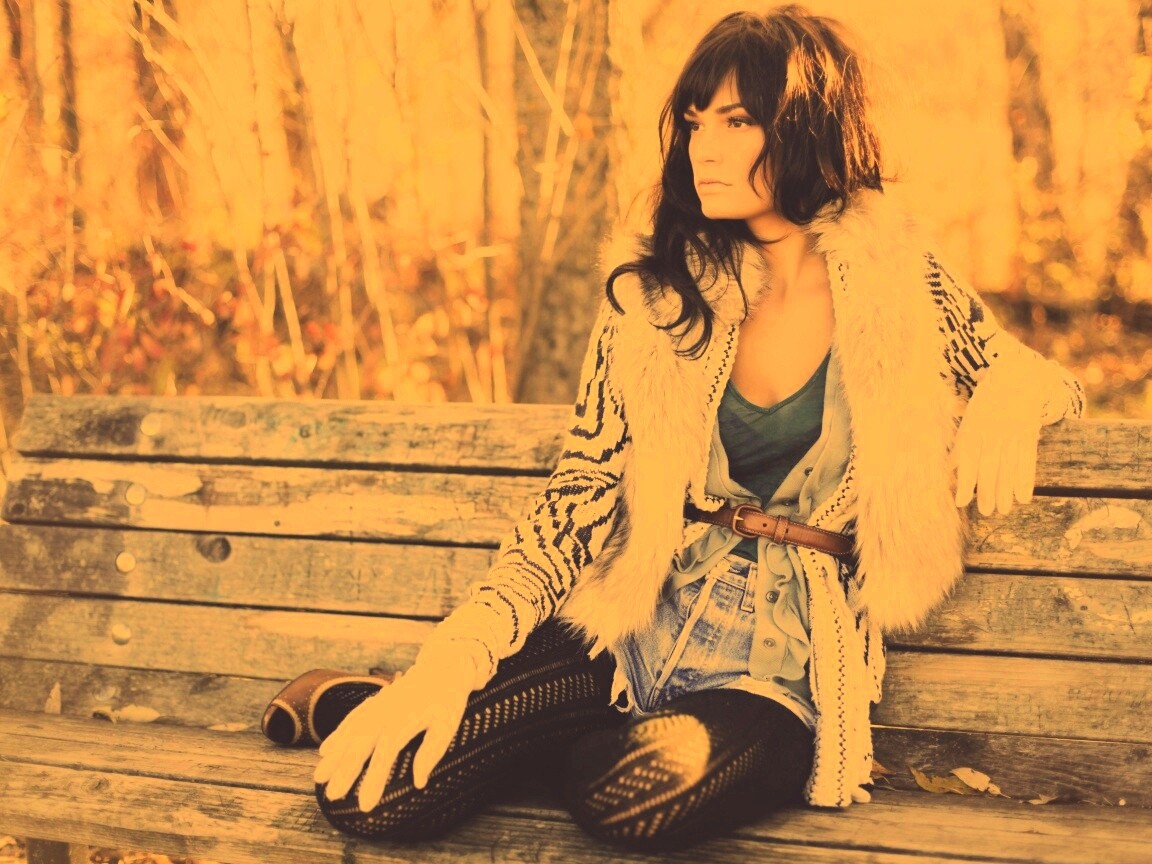 «Красивая девушка сидит на скамейке»