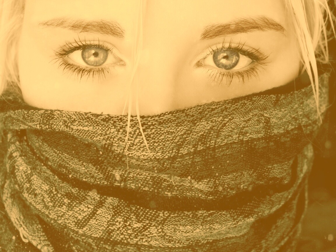 «Блондинка с шарфом на лице»