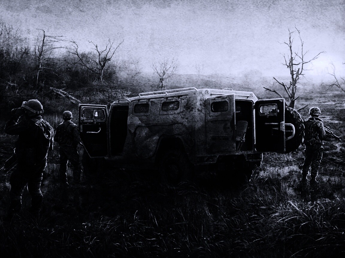 «Солдаты из сталкера на болоте»