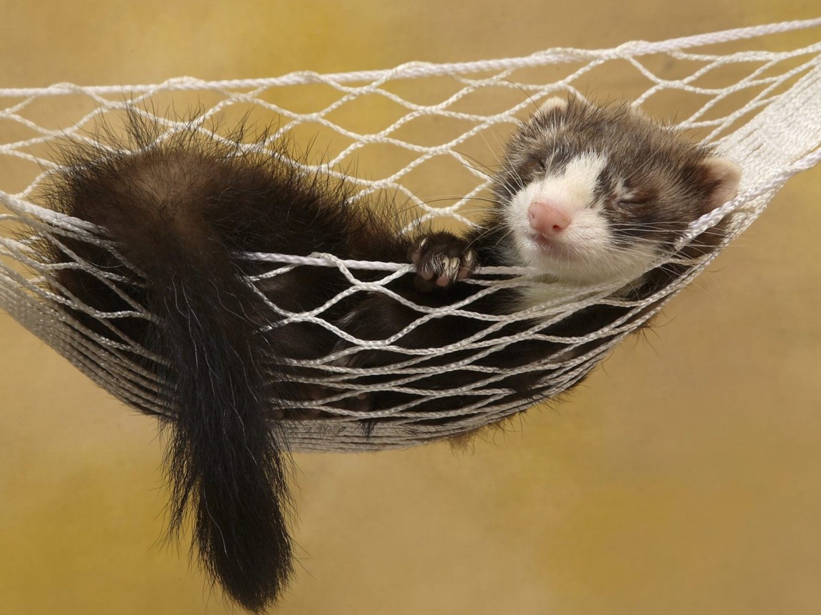 Обои для рабочего стола «Хорек в гамаке» 1152х864 (оригинал 2560х1600)