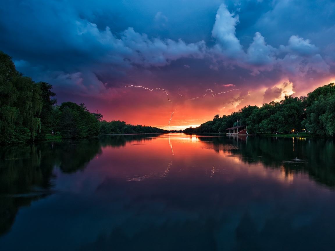 «Молнии на фоне заката, стандартные обои mac»