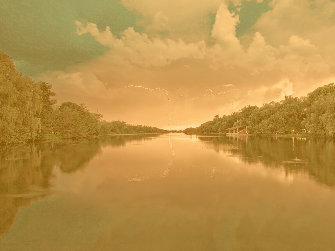 «Молнии на фоне заката, стандартные обои mac»