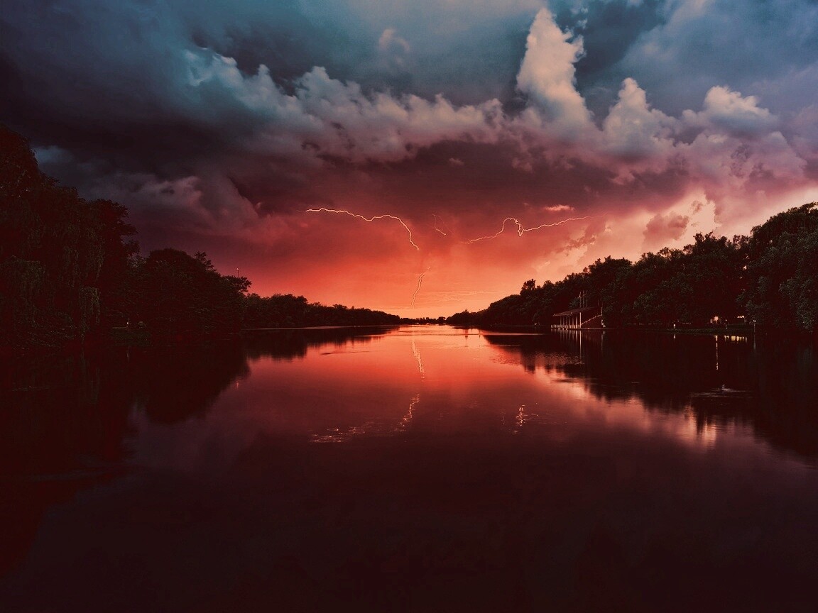 «Молнии на фоне заката, стандартные обои mac»
