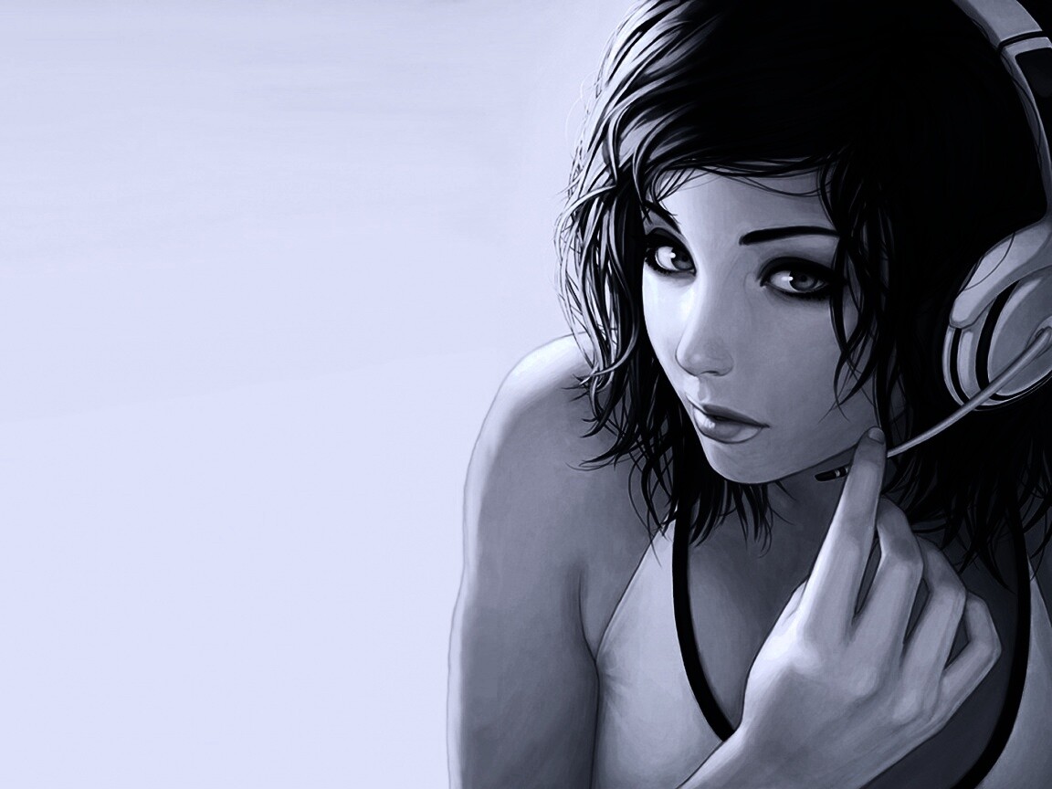 «Сексуальная девушка в наушниках с микрофоном»