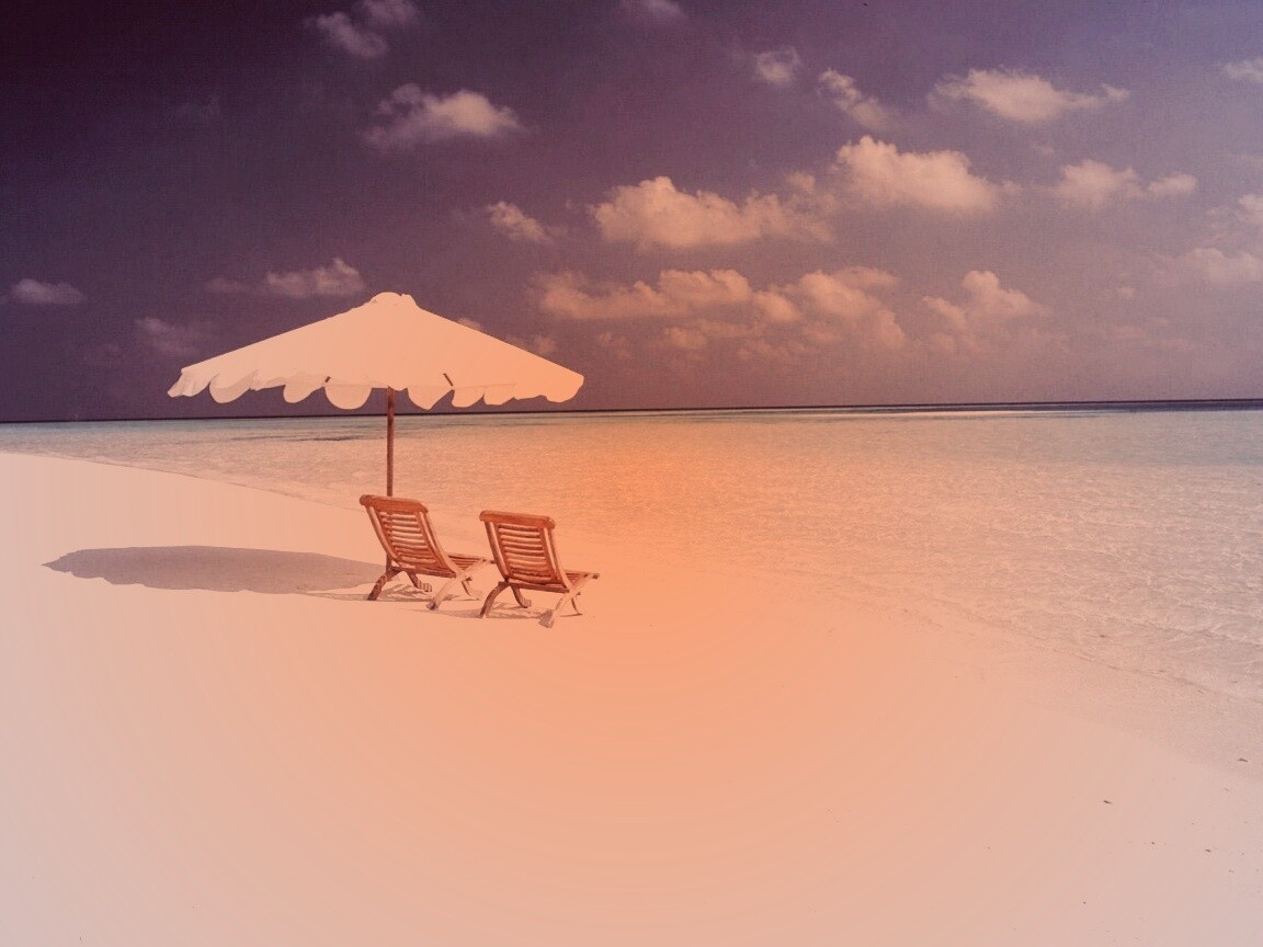 «Песчаный пляж с двумя жезлонгами»