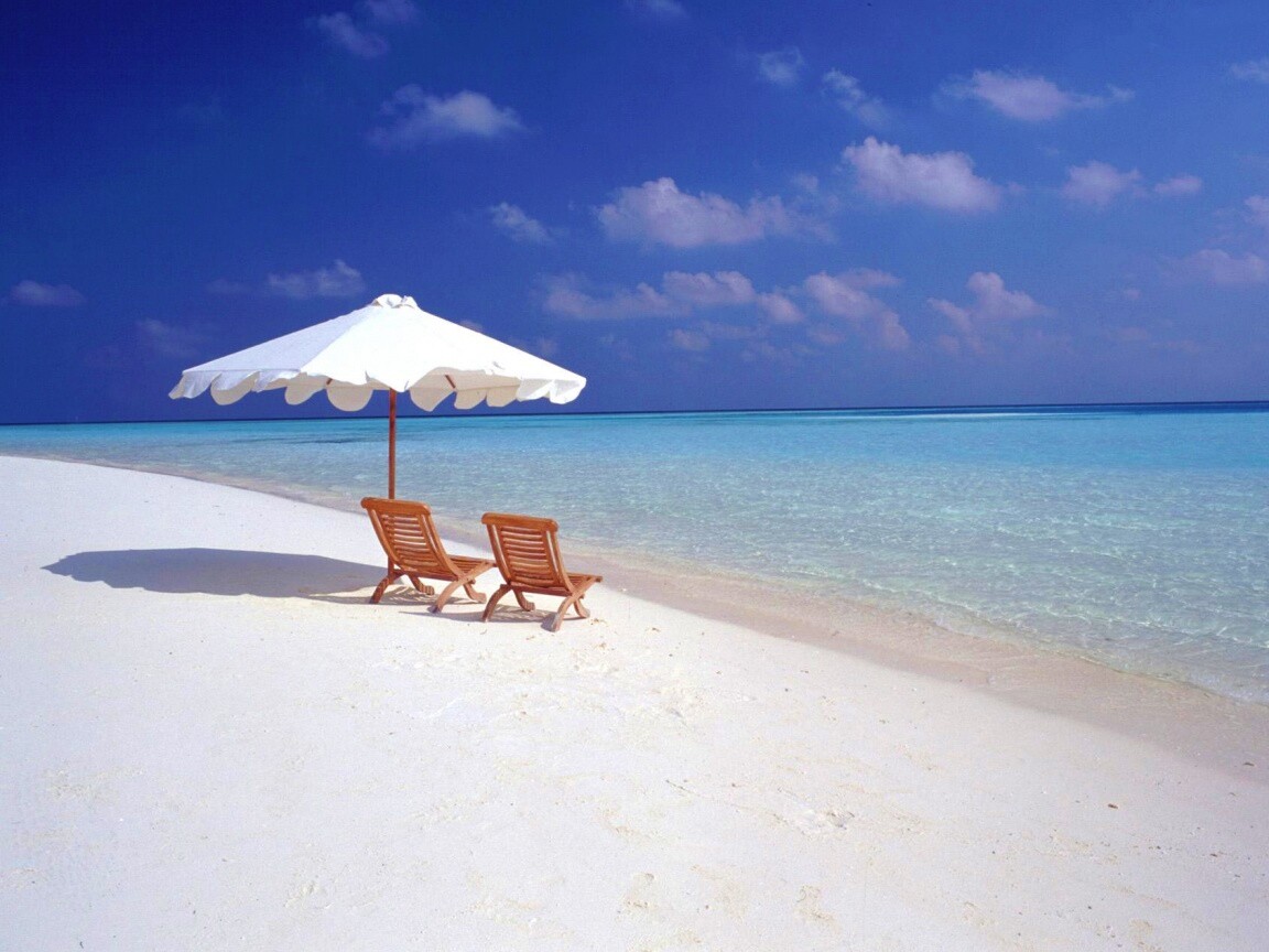 «Песчаный пляж с двумя жезлонгами»