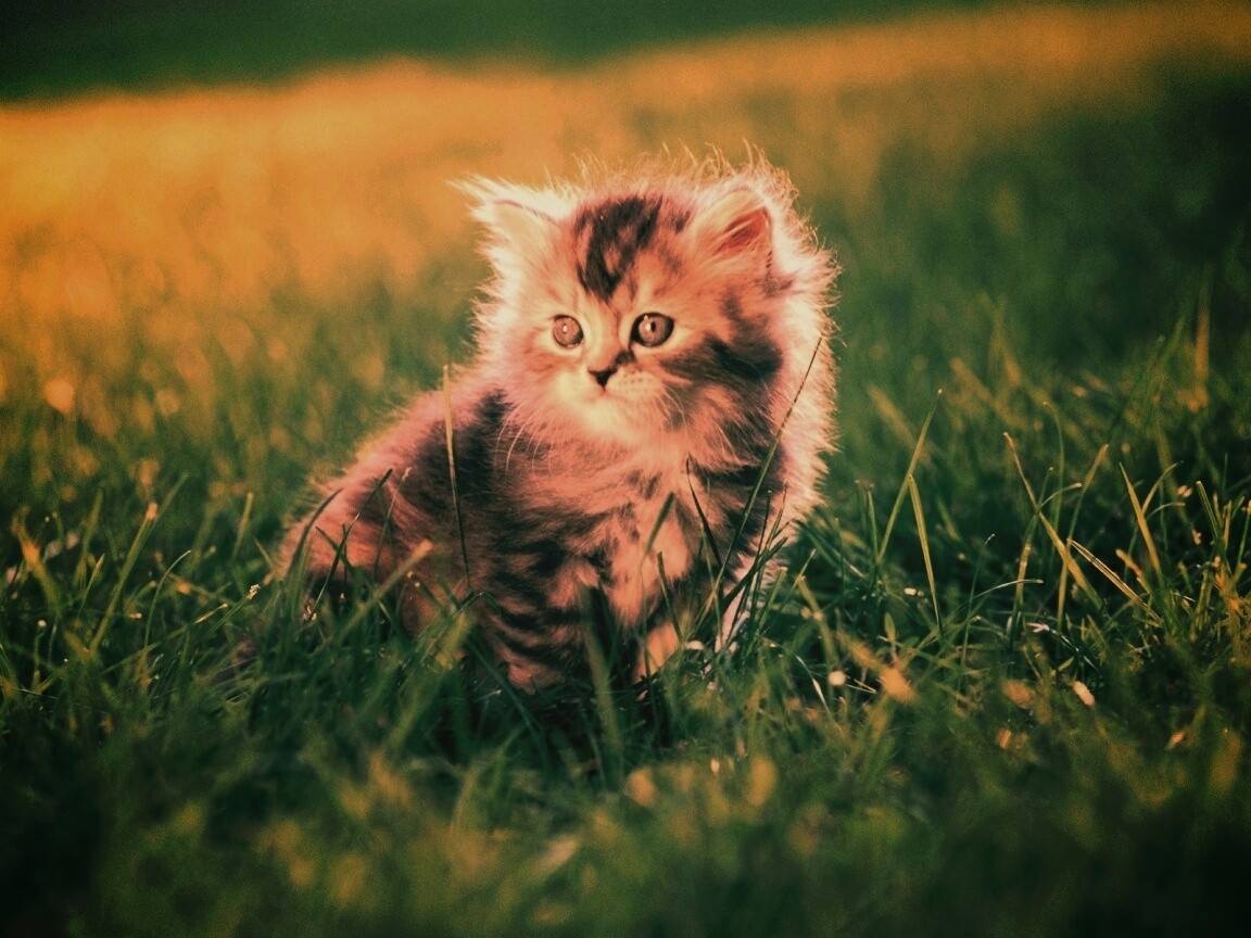 «Пушистый котенок в траве»