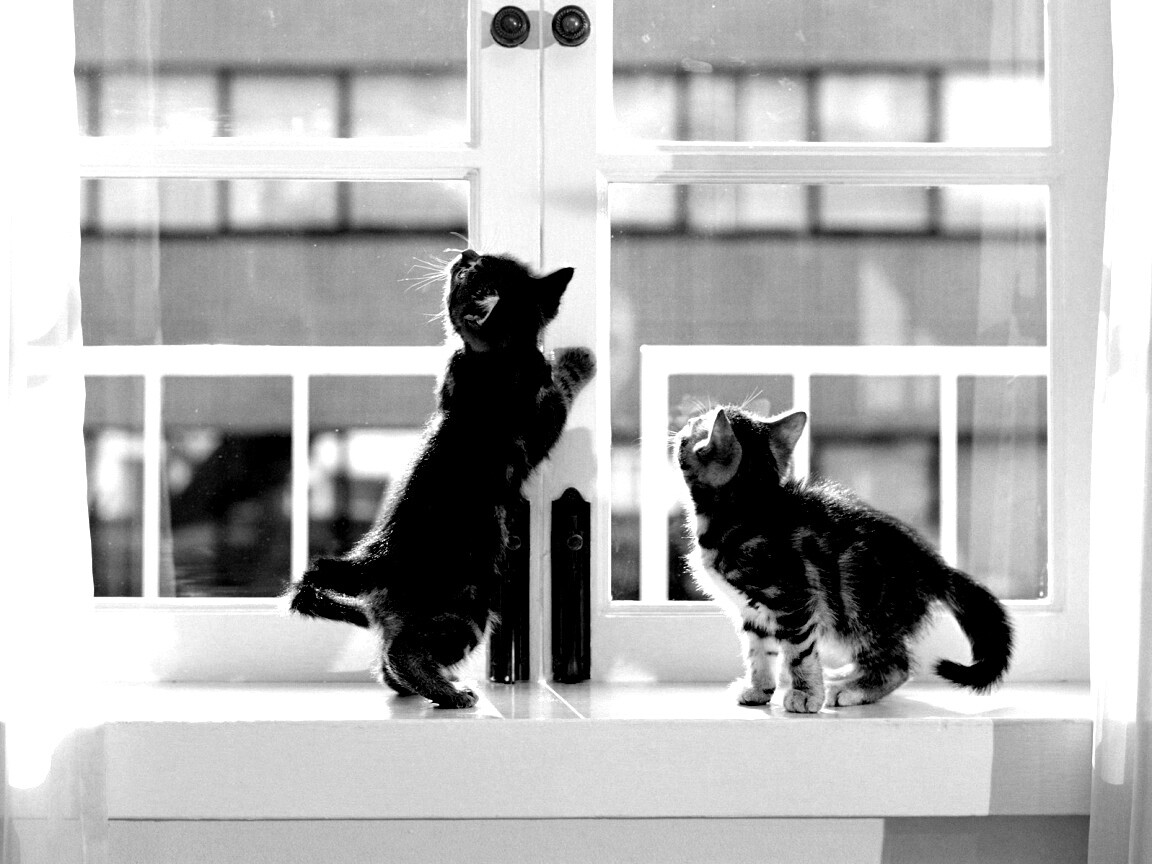 Котята у окна обои