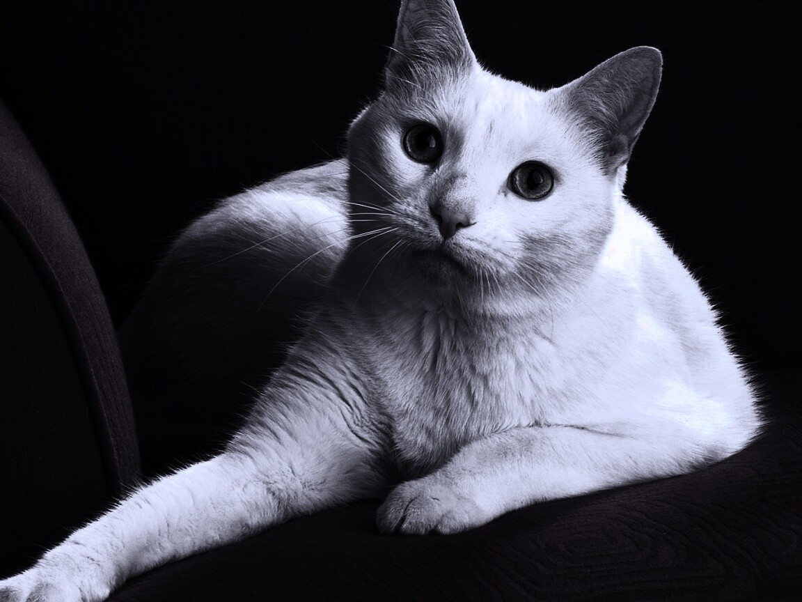 Обои для рабочего стола «Белой кот на красном диване» 1152х864 с фильтром gotham (оригинал 1680х1050)