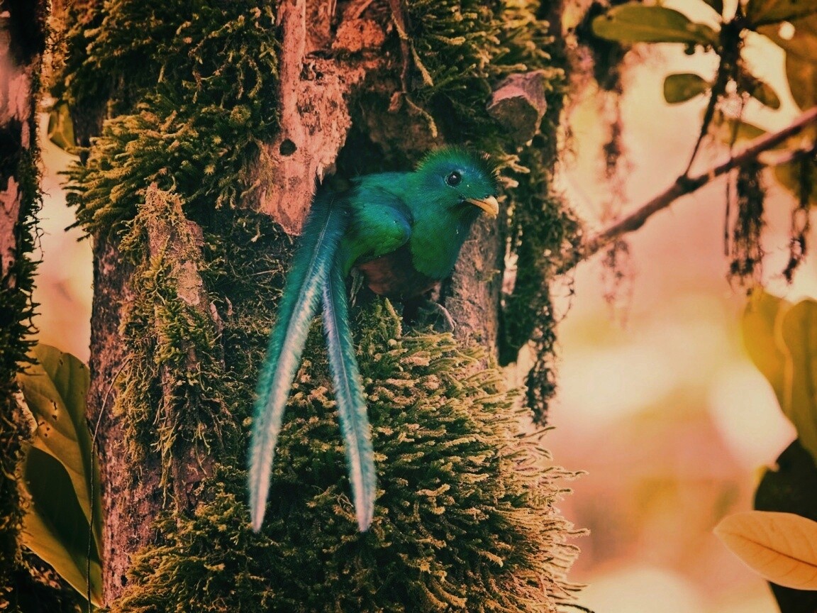 Обои для рабочего стола «Райская птица в дупле» 1152х864 с фильтром earlybird (оригинал 1921х1200)