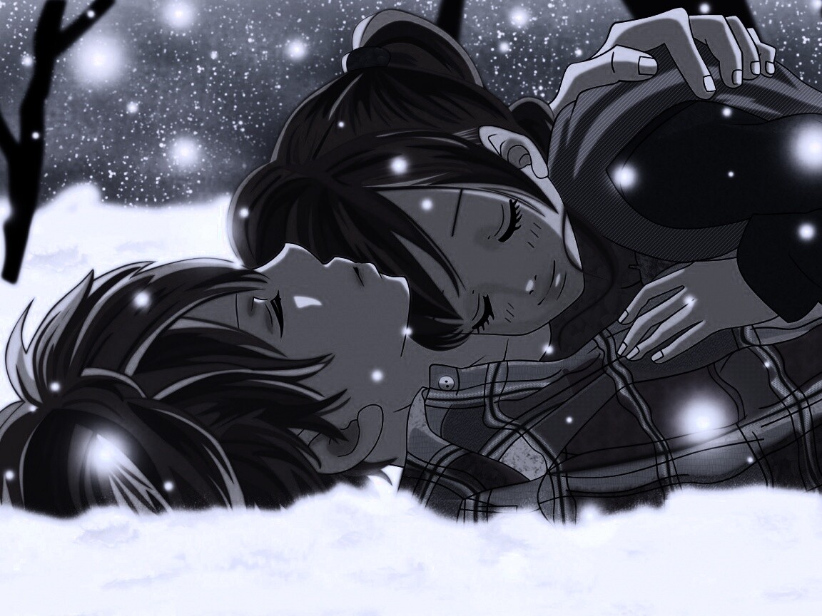Обои для рабочего стола «Двое на снегу из Bokura Ga Ita» 1152х864 с фильтром gotham (оригинал 2000х1400)