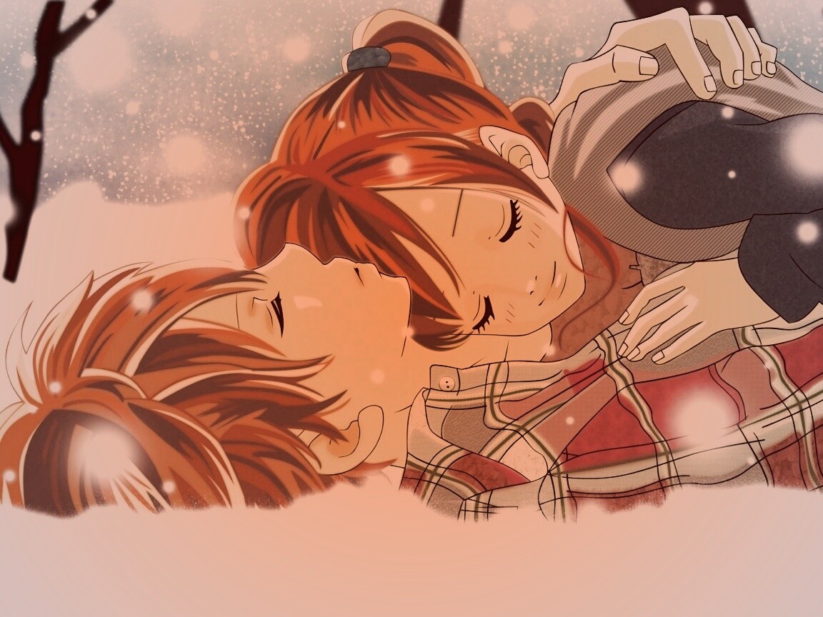 Обои для рабочего стола «Двое на снегу из Bokura Ga Ita» 1152х864 с фильтром toaster (оригинал 2000х1400)