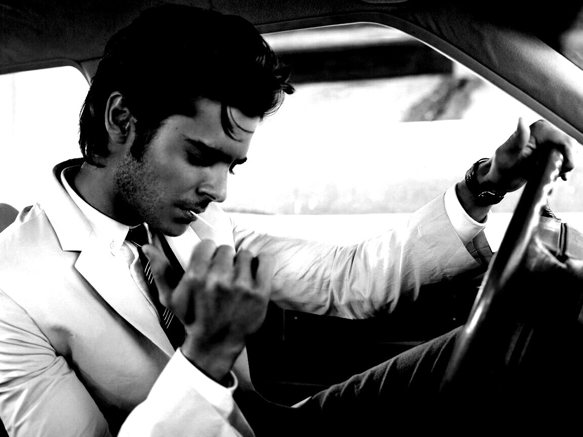 «Мужчина прикуривает в машине»
