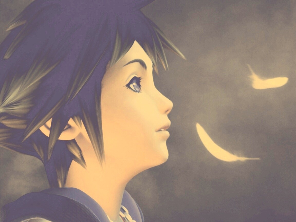 «Анимешный парень и белые перья»