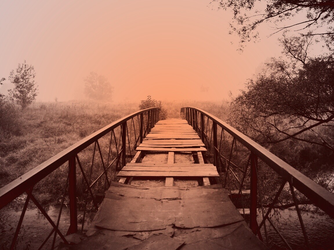 «Старый мост на черно-белом фото»