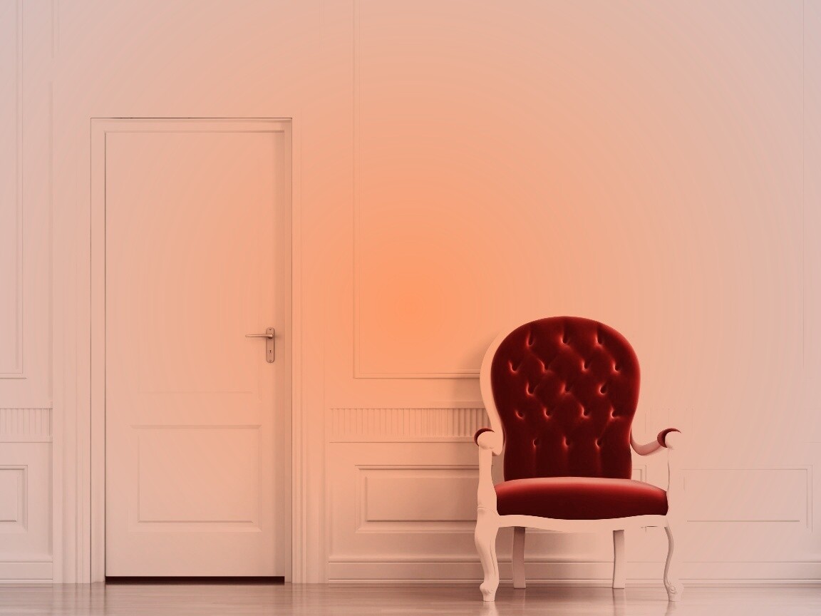 «красное кресло в белой комнате»