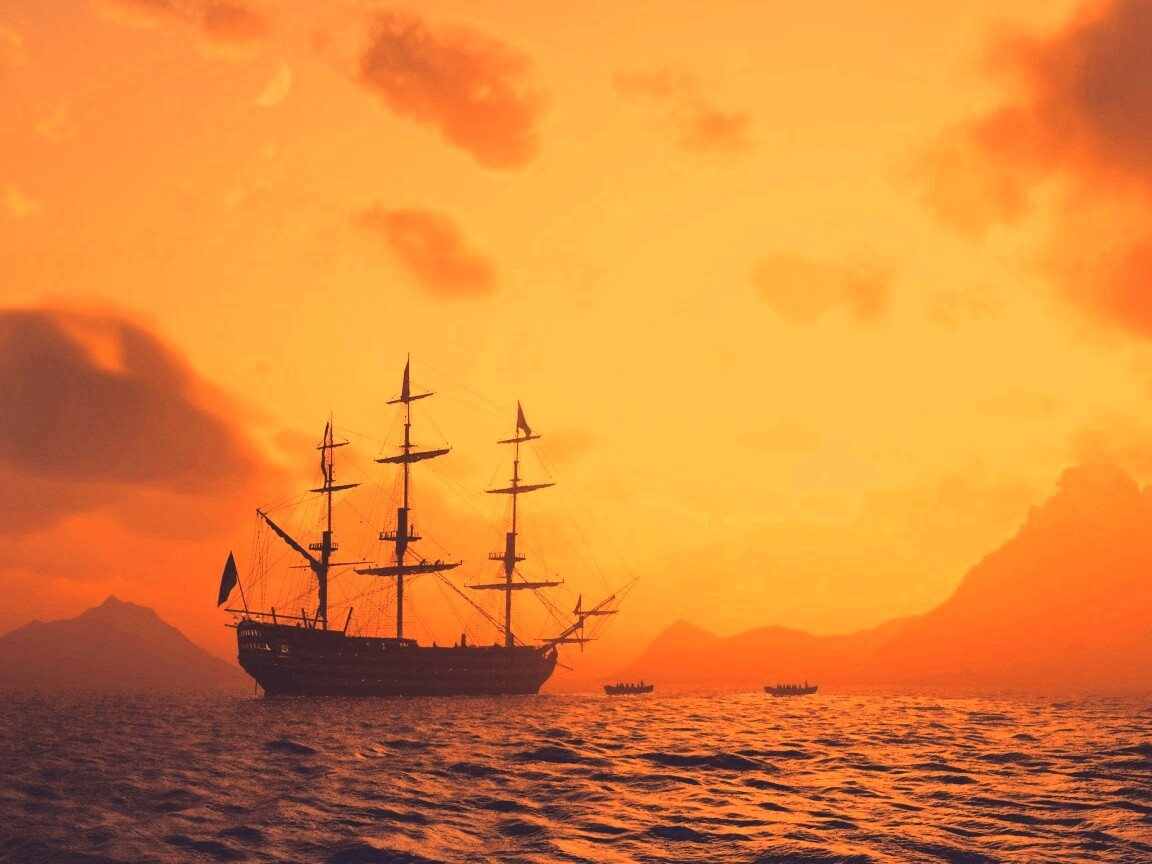 «Трехпалубный парусный корабль на закате»