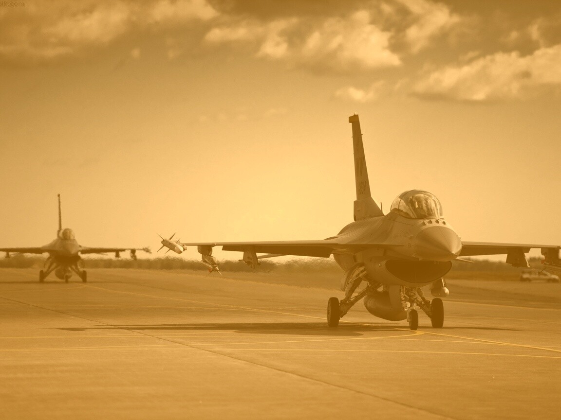 «Истребители f16 Falcon на взлетной полосе»