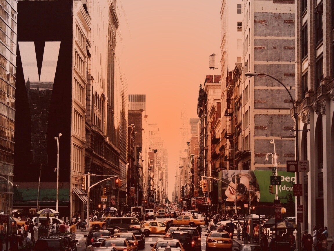 Обои для рабочего стола «Людная Нью-Йоркская улица» 1152х864 с фильтром toaster (оригинал 2560х1600)