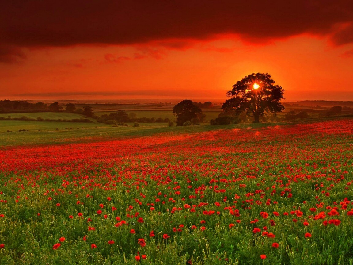 «Закат на поле красных цветов»