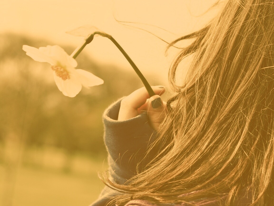 Обои для рабочего стола «Девушка с нарциссом в руке» 1152х864 с фильтром kelvin (оригинал 2560х1600)